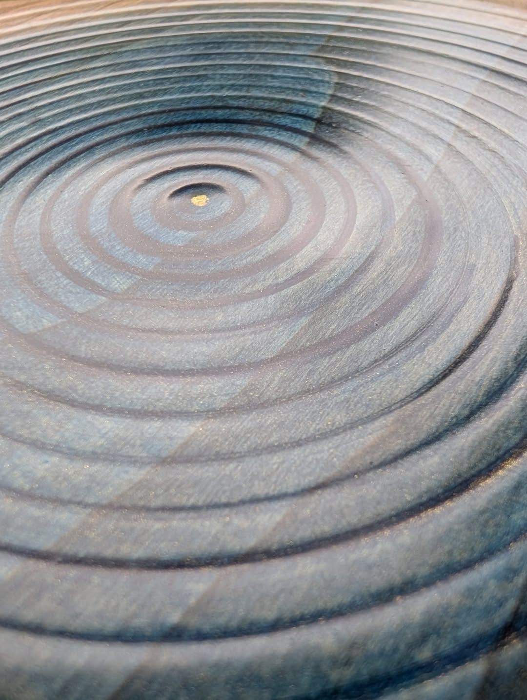一滴の雫から広がる波紋のように、素敵な深いブルーです。